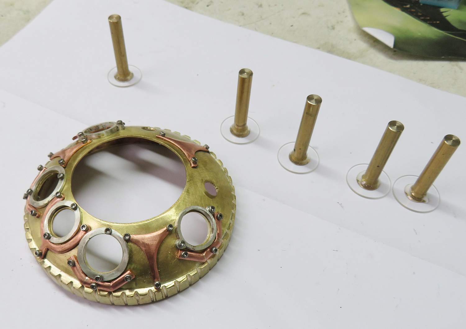 Now, for the bridge porthole windows. I made the copper armour and silver surround for the glass, that I am cutting on my gem cutting machine.