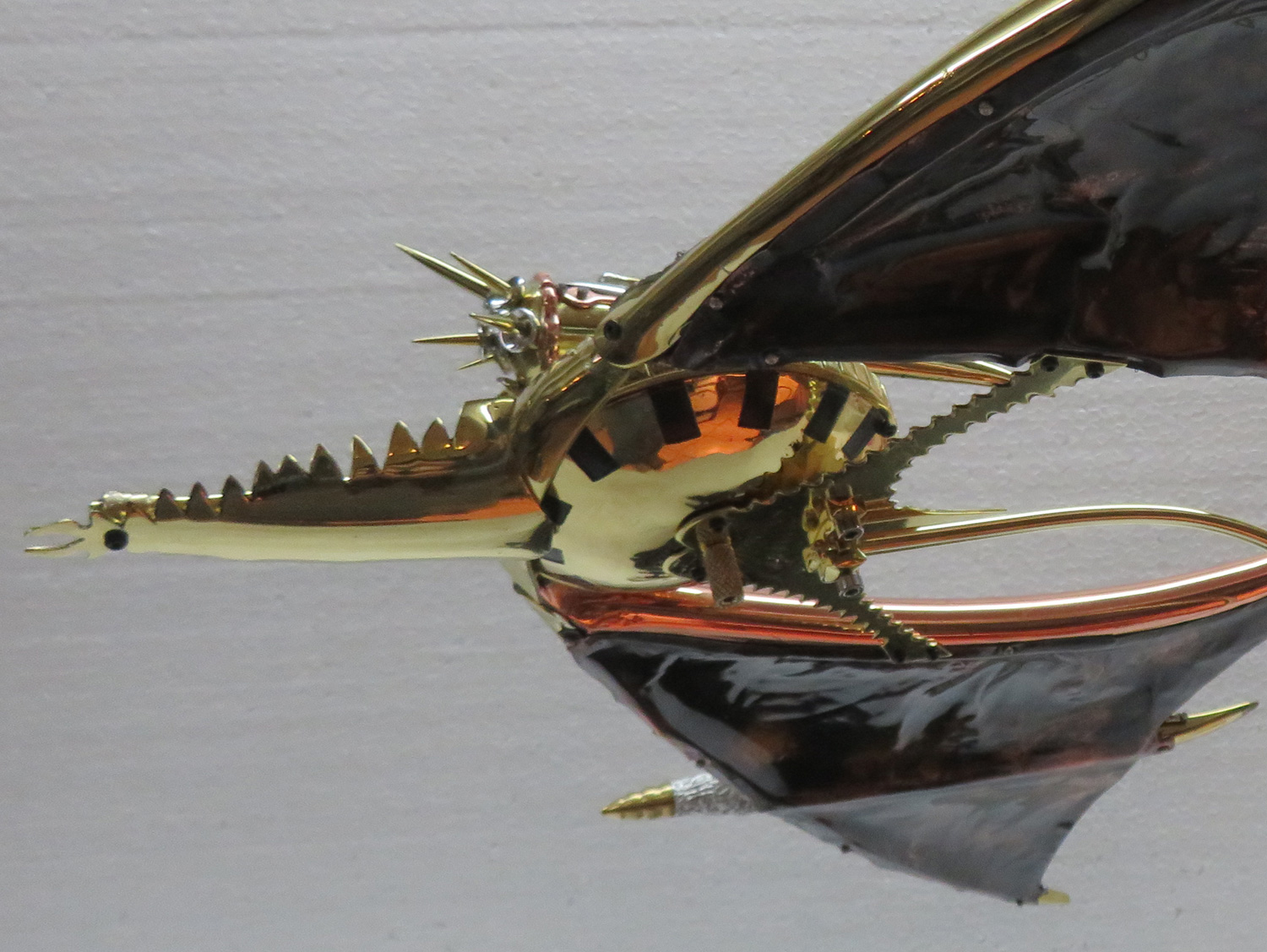 The alien spacecraft sculpture is less about smooth perfection and more about raw, industrial imagination made visible in metal.