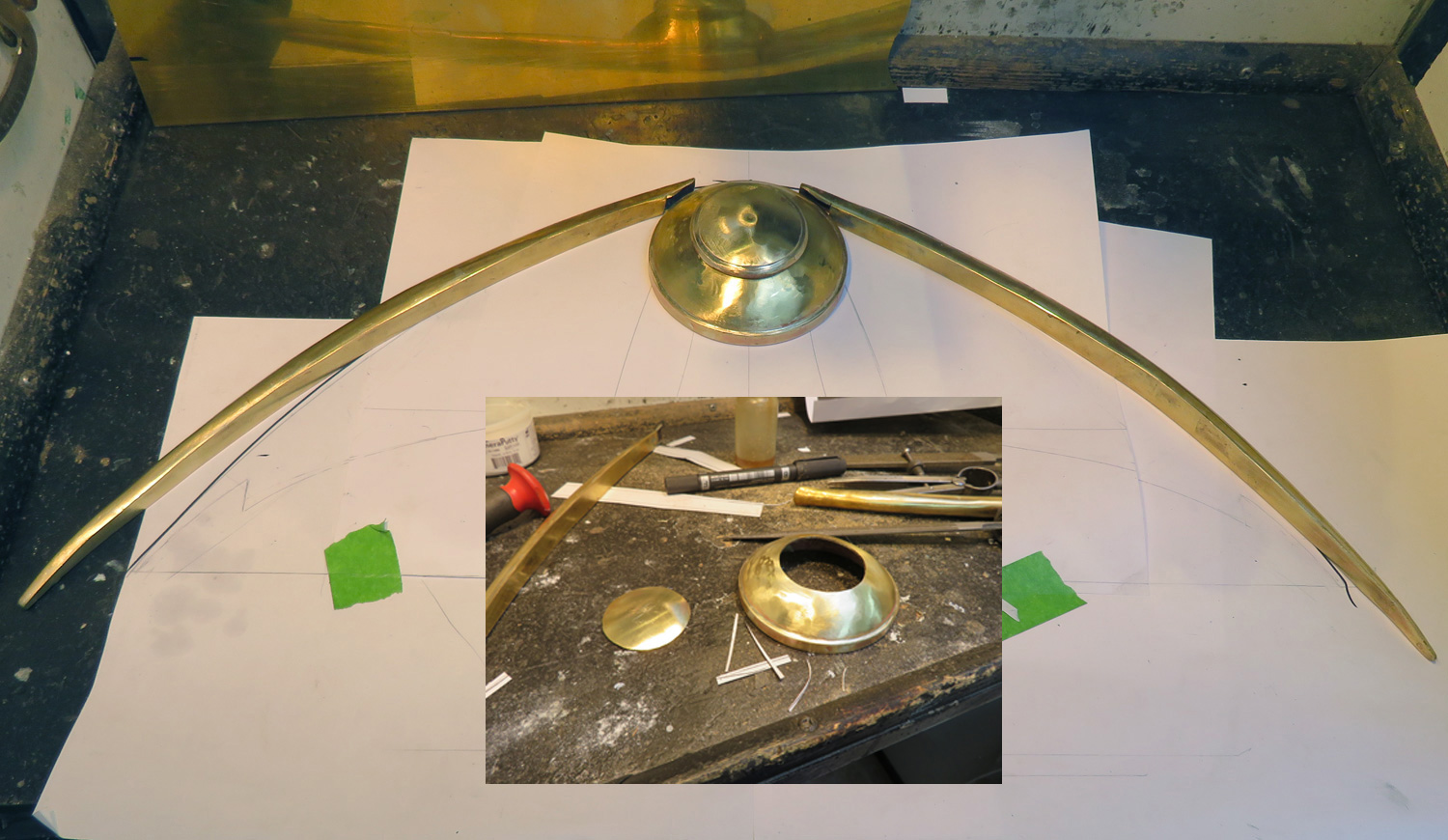 First the sketch and then two strips of brass are filed to a taper, made half round and then soldered closed with another matching strip.