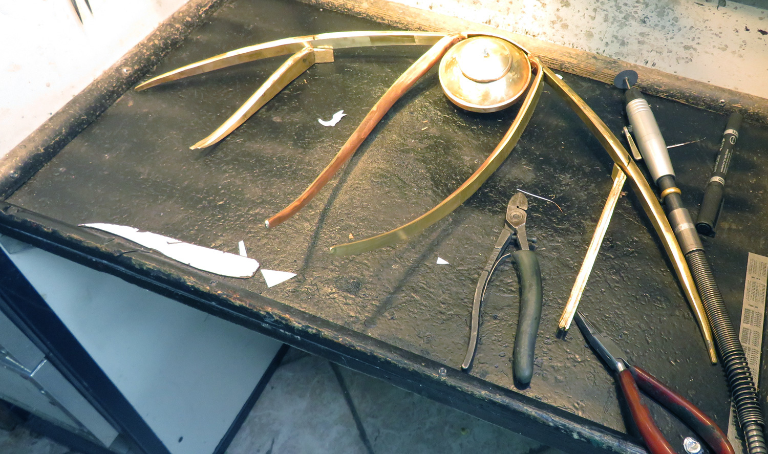 I make the inner body frame in similar way as the leading edges, except that I use a combination of brass and copper.