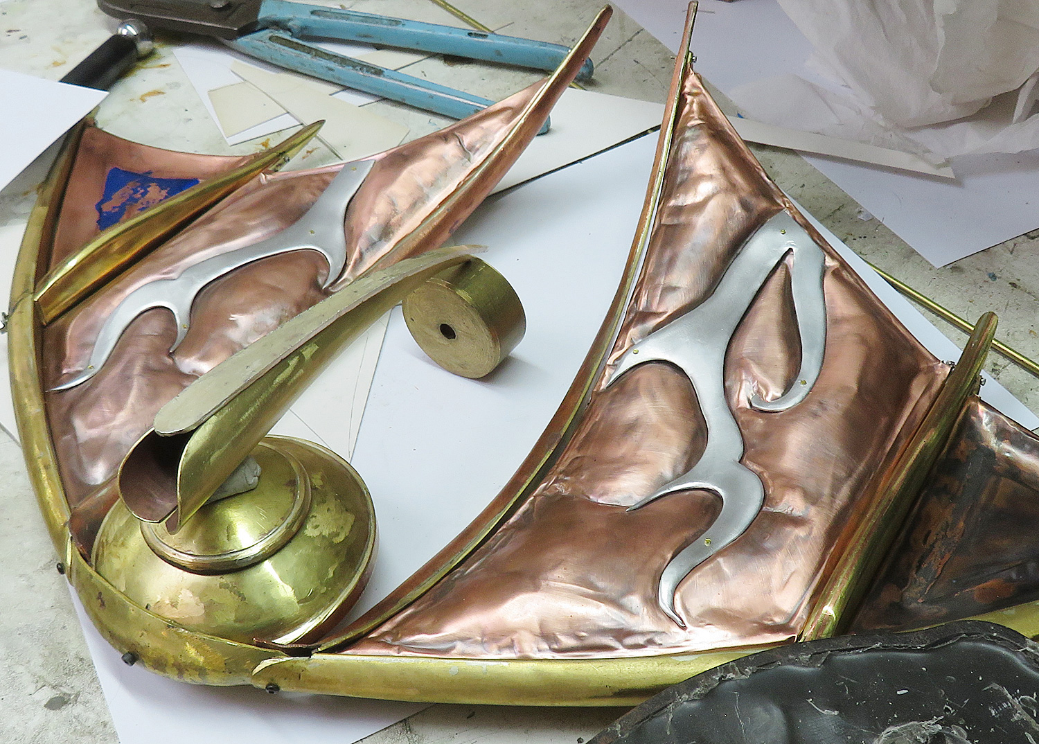 The frame is clad with copper foil (0.1 mm) thick. I anneal the copper first.