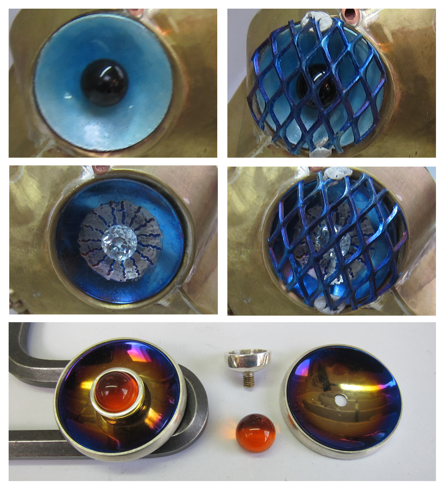 This is always difficult, because they are eyes, windows to the soul, or in this case, to the pilot interface unit. I'm not going to show every attempt, but eventually I arrived at this background, which I liked. These were blued from a cooler flame on the inside to a slightly hotter flame to the outside.