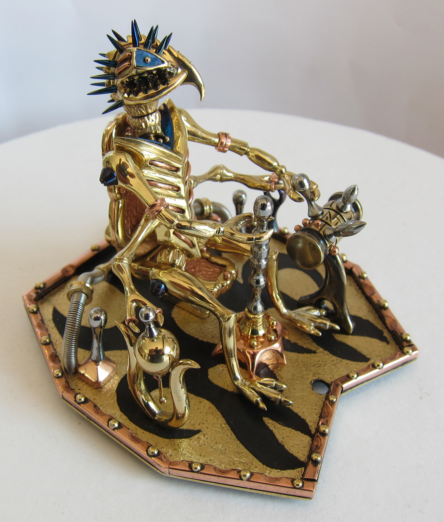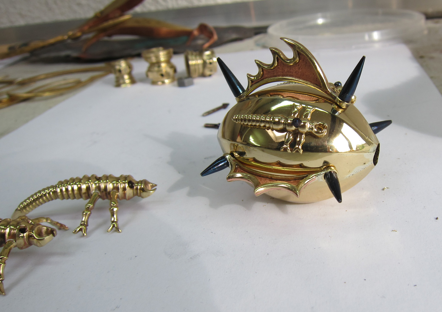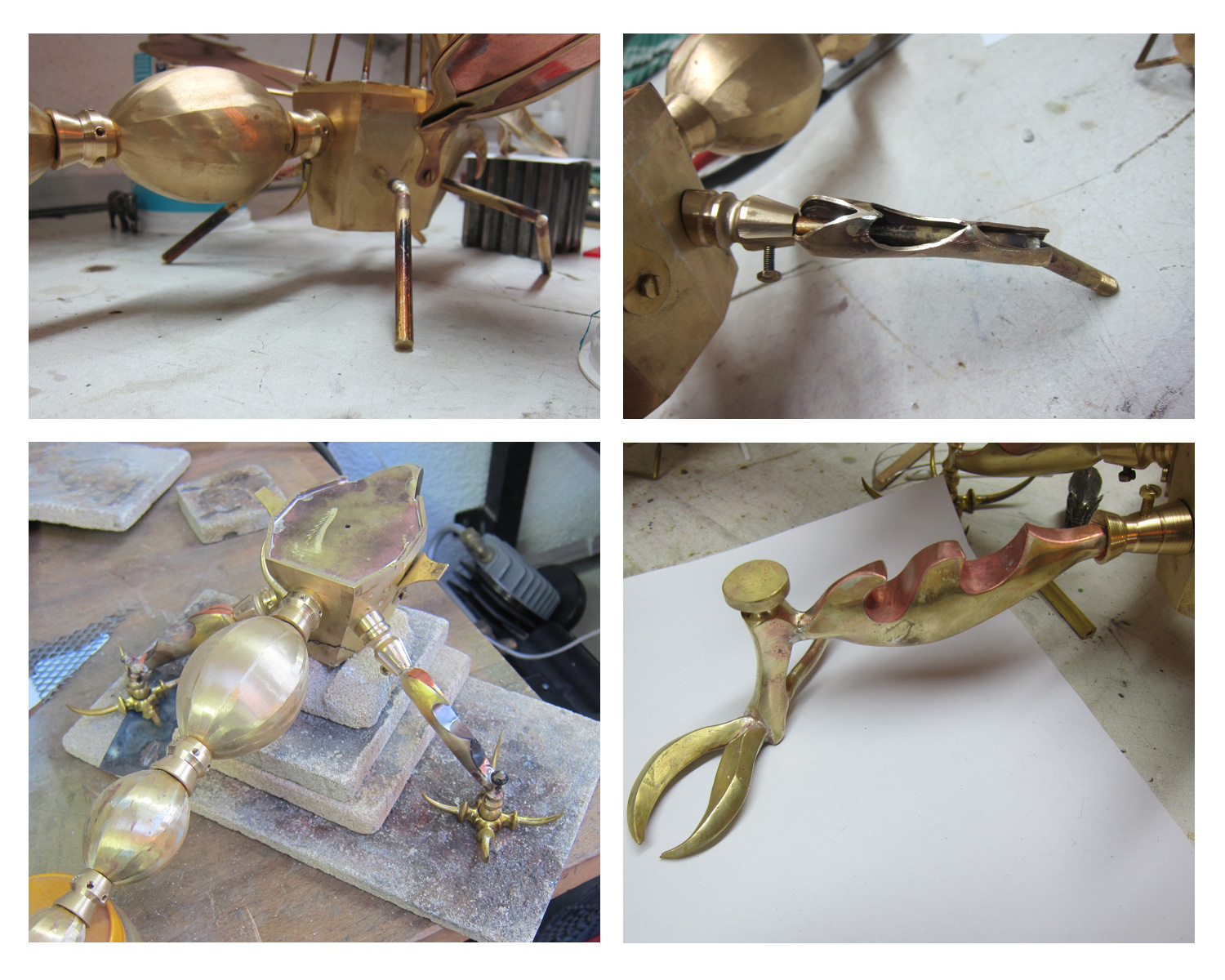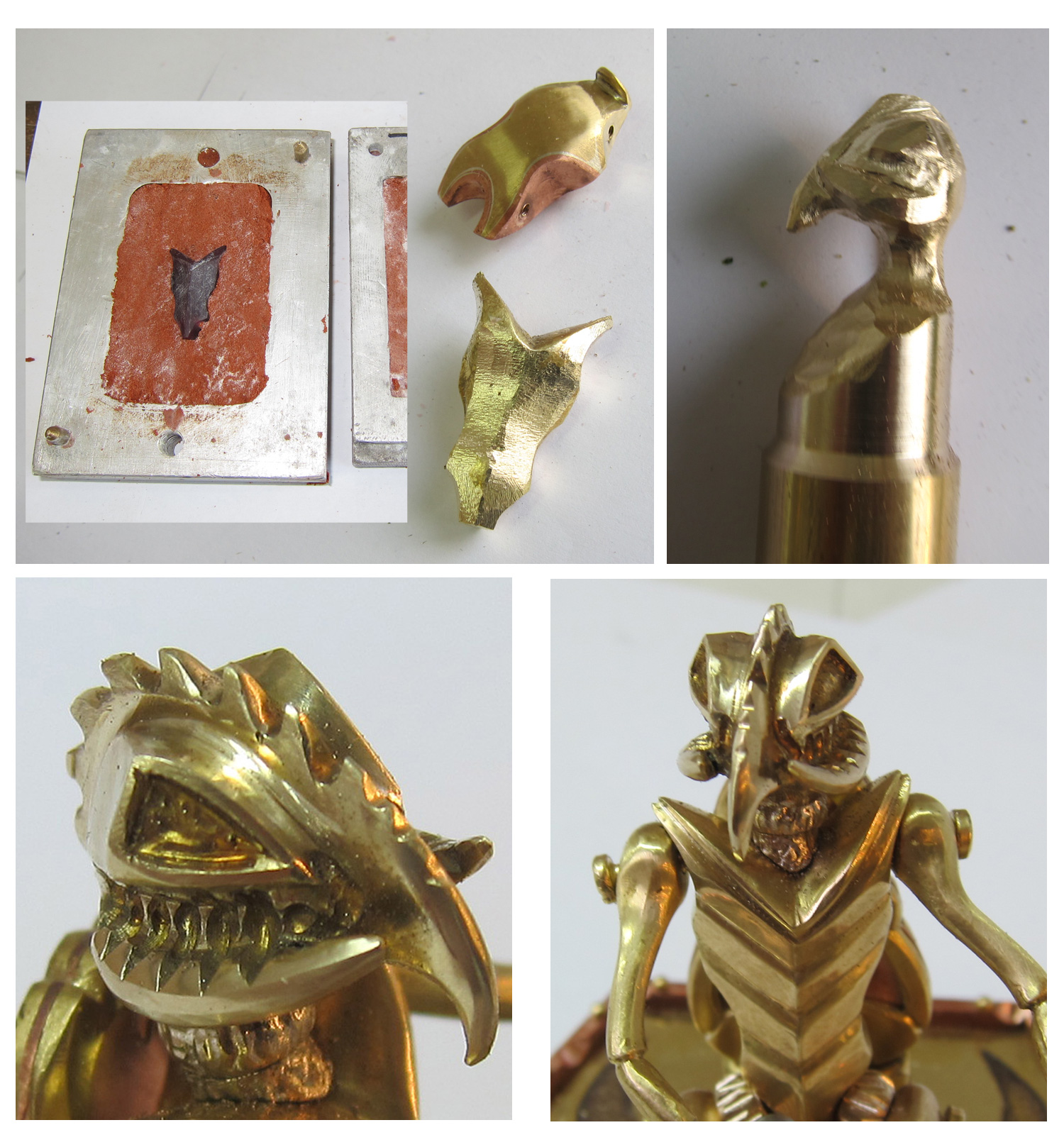 Then I was playing around with the alien pilot in the cockpit. I used the lost wax method to cast the body and carved the head in a beak-like shape. I decided to add another set of arms, because alien pilots are very skilled and the Dragon Fly fighter is very difficult to fly.