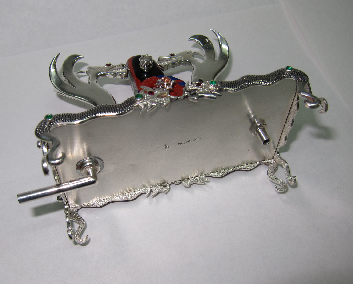 Dragon's Breath is a miniature oscillating steam machine, made out of gems silver and gold.