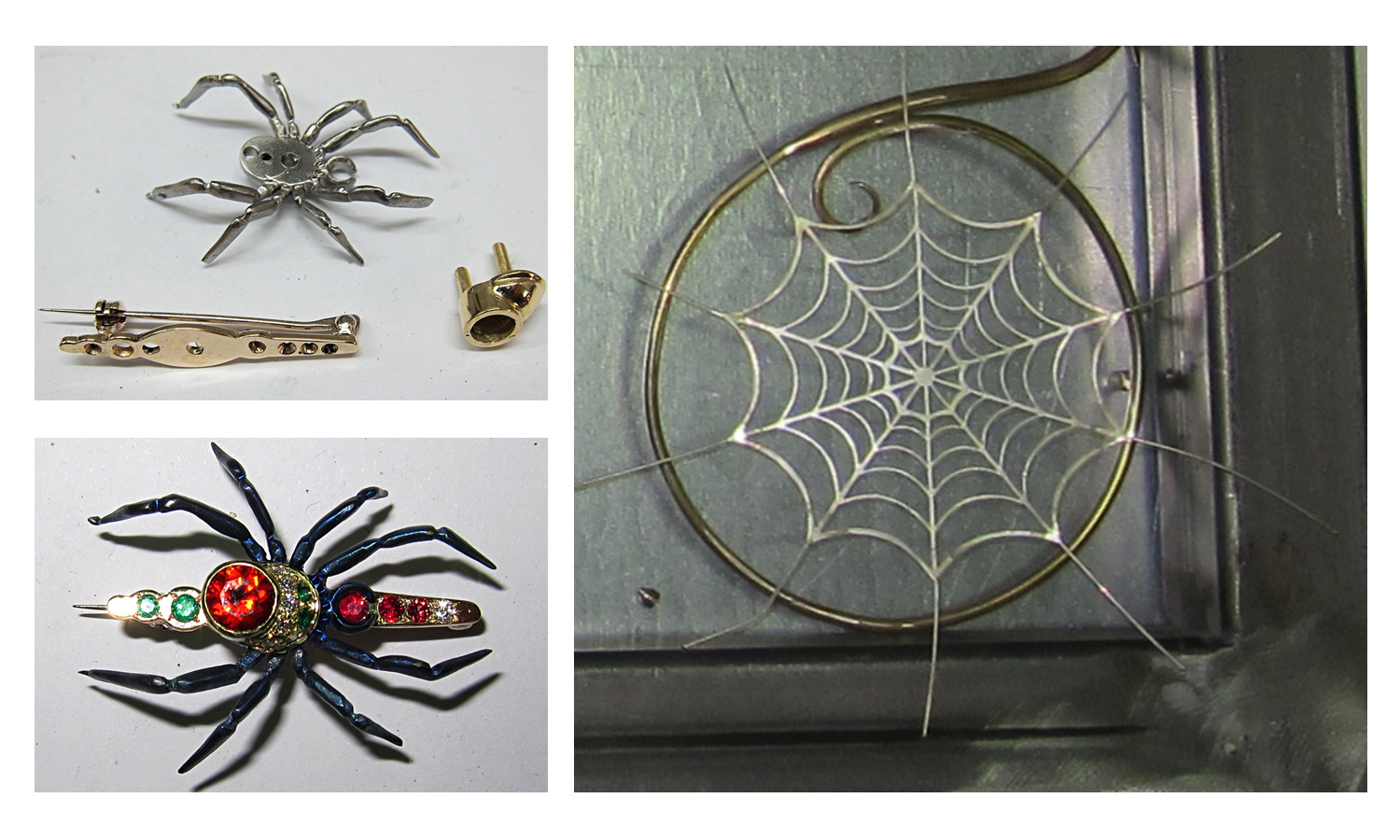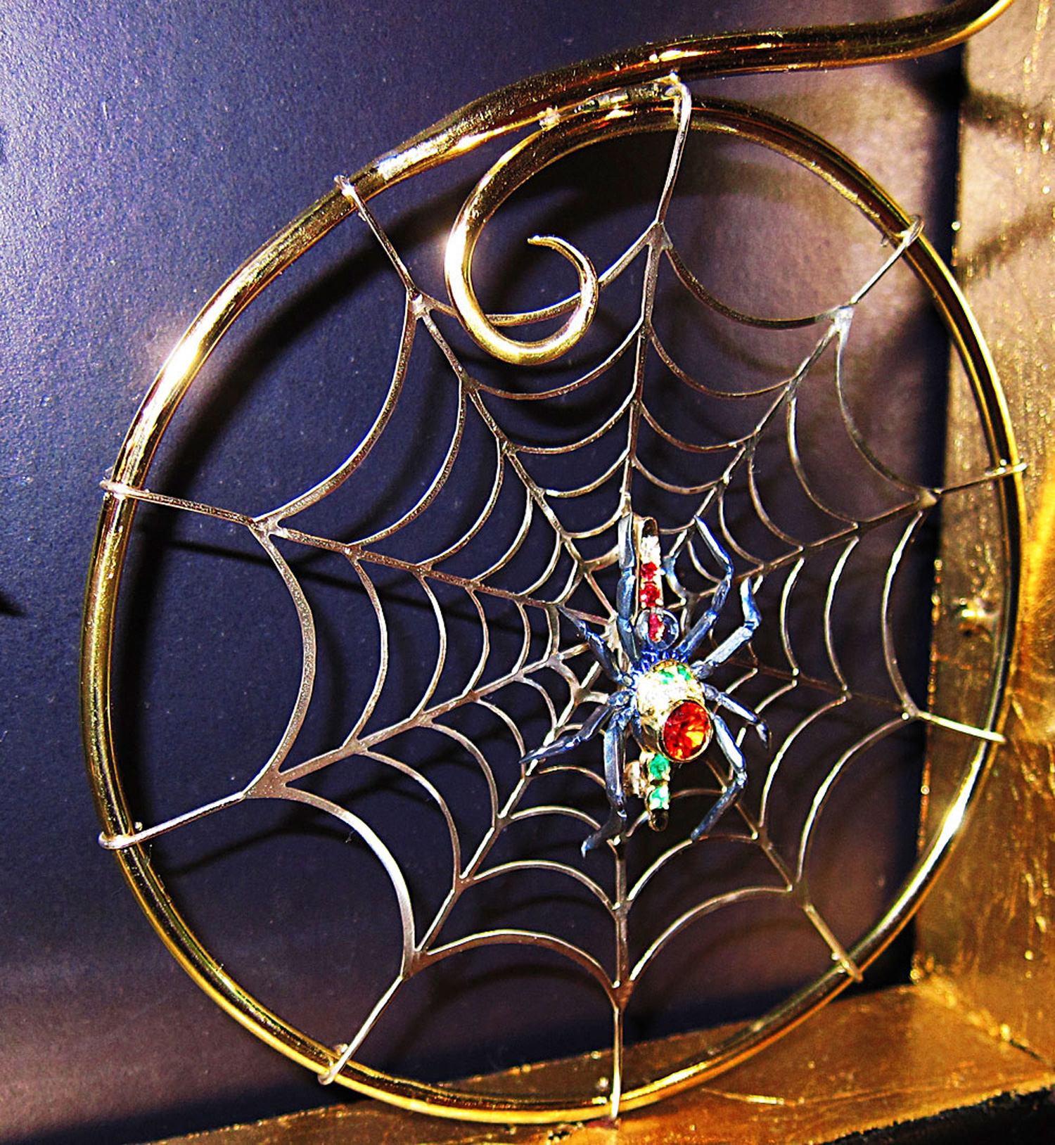 The titanium spider brooch on the spiders web.