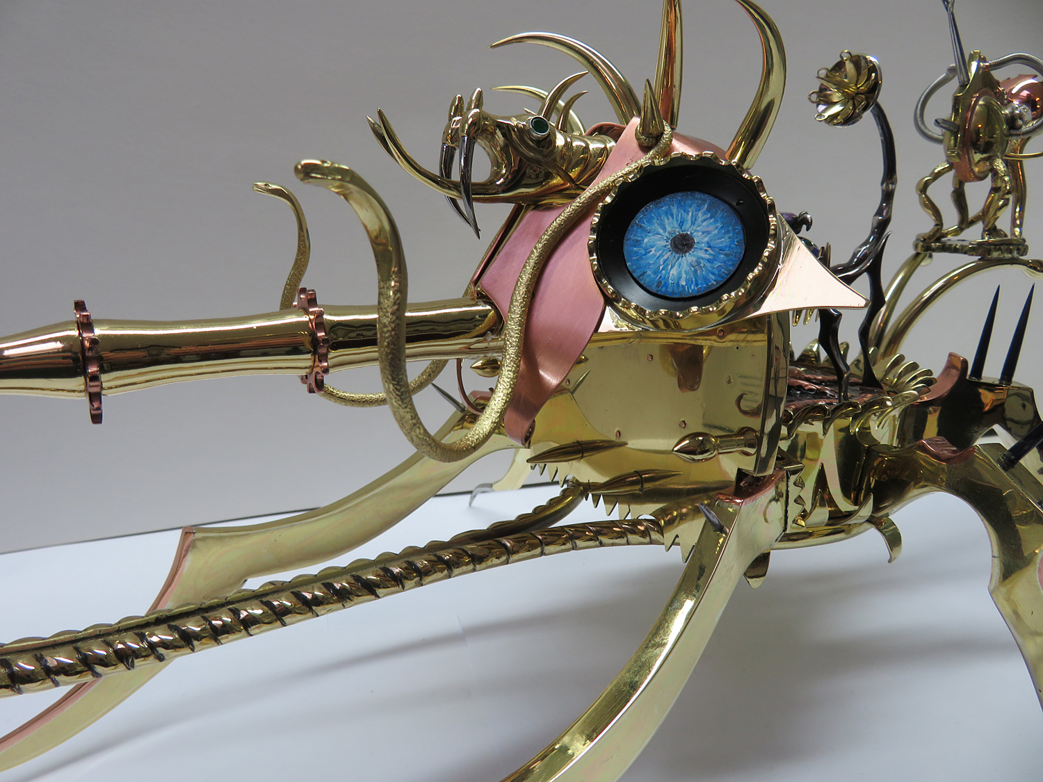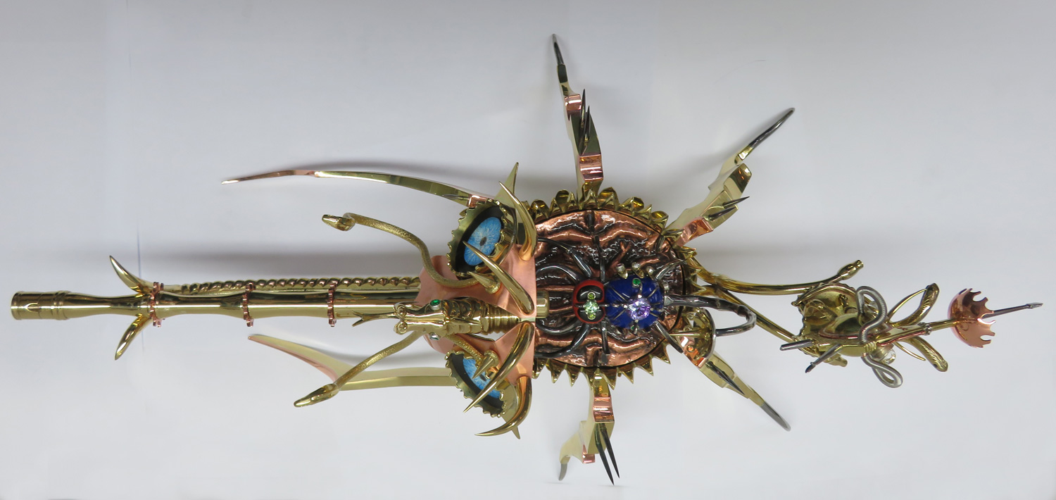 Repousséd into the copper platform is the god beetle as well as a copper mantra interface to guide all the war spirits of the Swarm species.