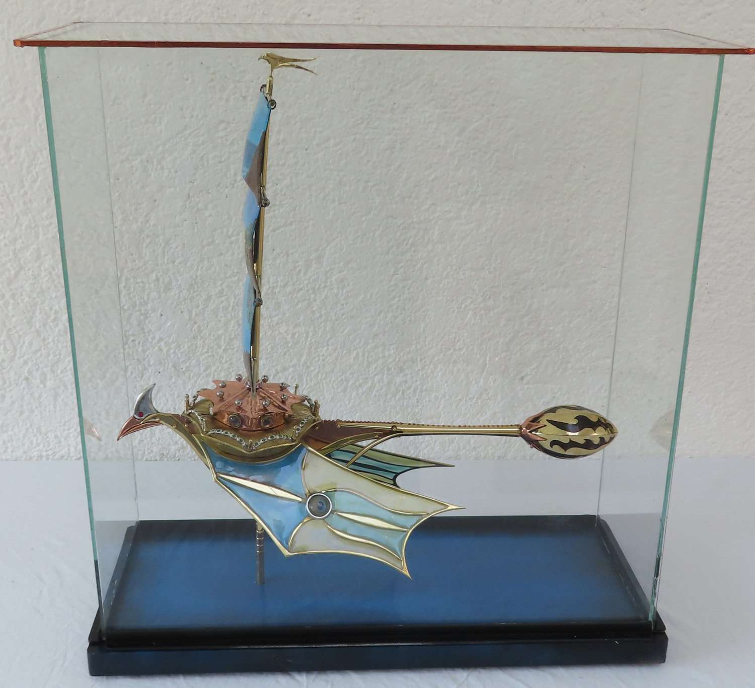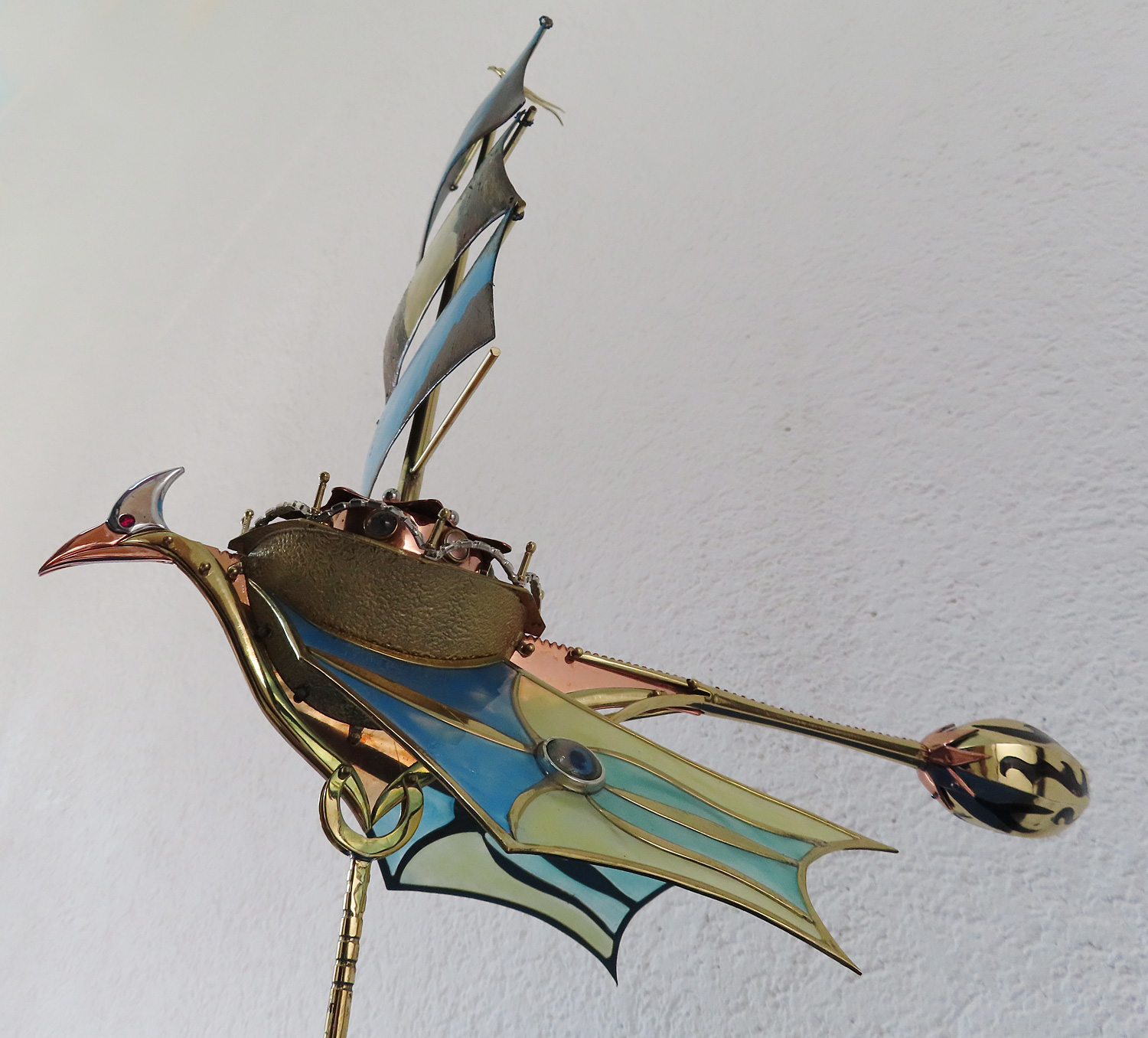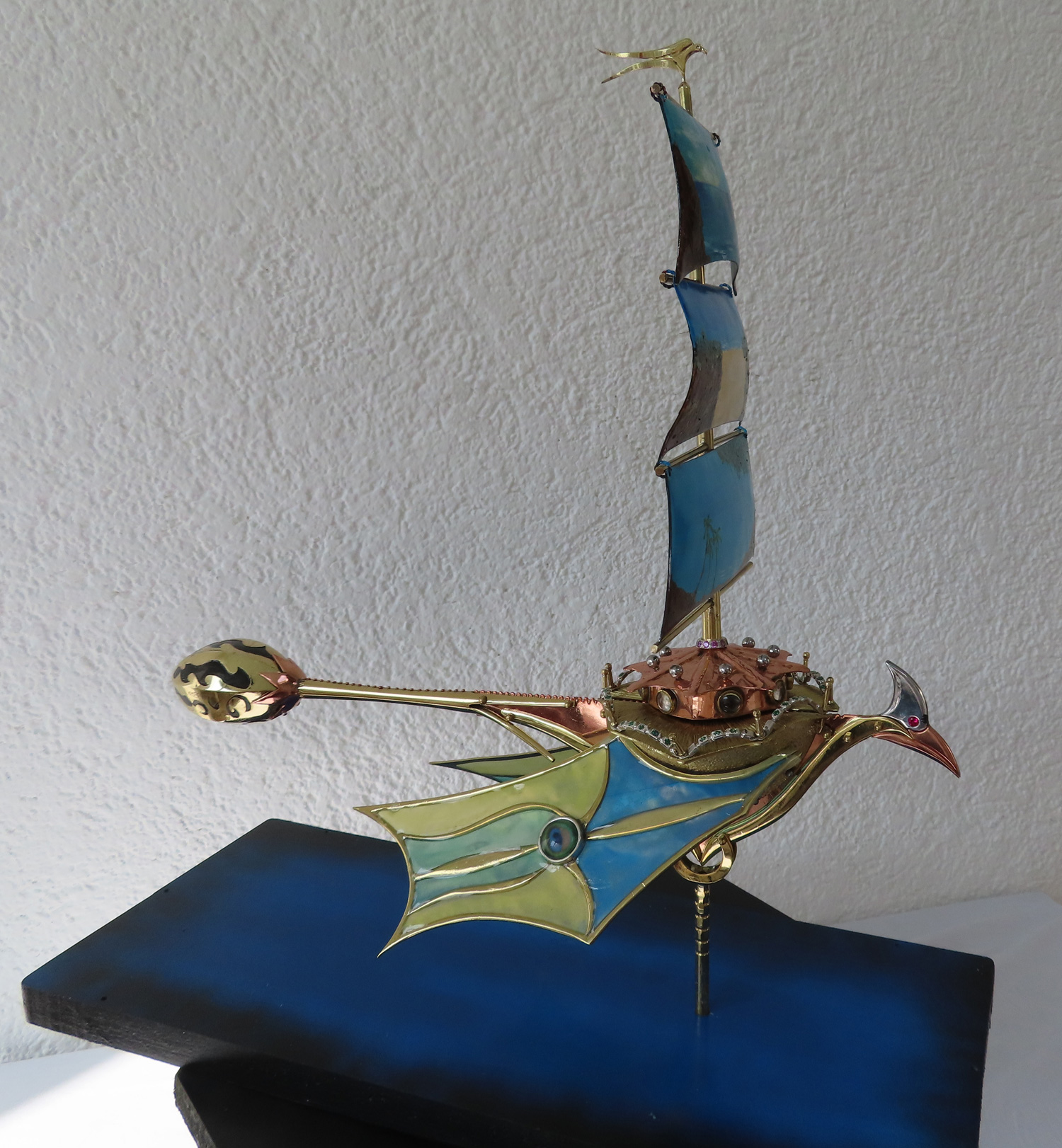 I made the sleek Sail Flyer that I crafted from brass, aluminium, some natural gemstones, glass and copper.